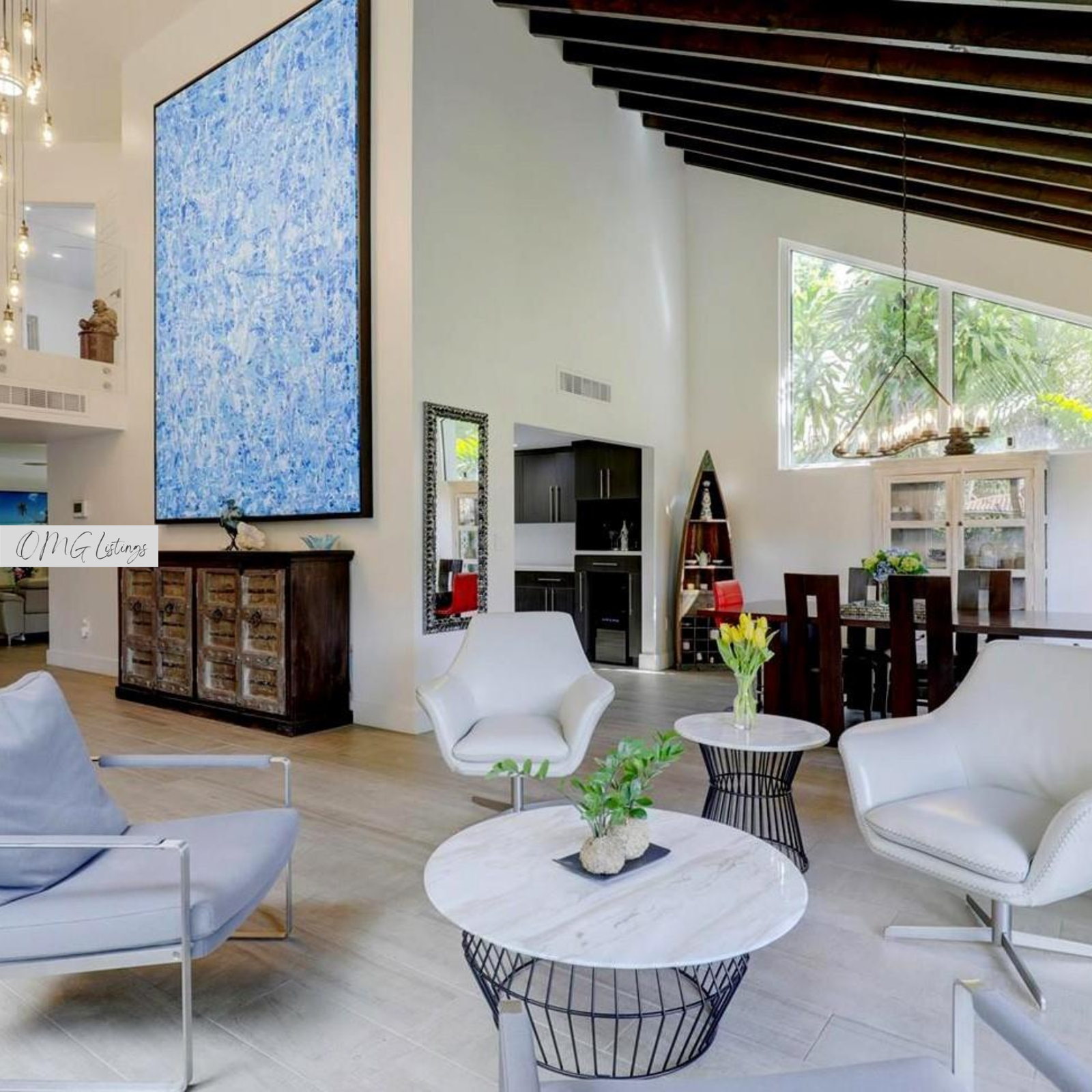 Contemporary modern style 2 story home in Coral Gables. Completely remodeled 3Beds/3full baths. Extremely high ceilings with wood beams greet you. House offers formal living and dining areas plus an open concept modern kitchen. Custom electric high-end blinds and plantation shutters. House has impact windows and doors and a one-car garage. One-bedroom plus full bathroom is on the first level. Floating contemporary stairs with glass railing lead you to the second floor where the other 2 bedrooms/2 bathrooms are located. House has lots of custom closets plus custom wall built-in extra drawers and shelves. House is located on a corner lot. 2019 Roof with a transferable warranty. Minutes from Miracle Mile, shopping, restaurants, and great schools.