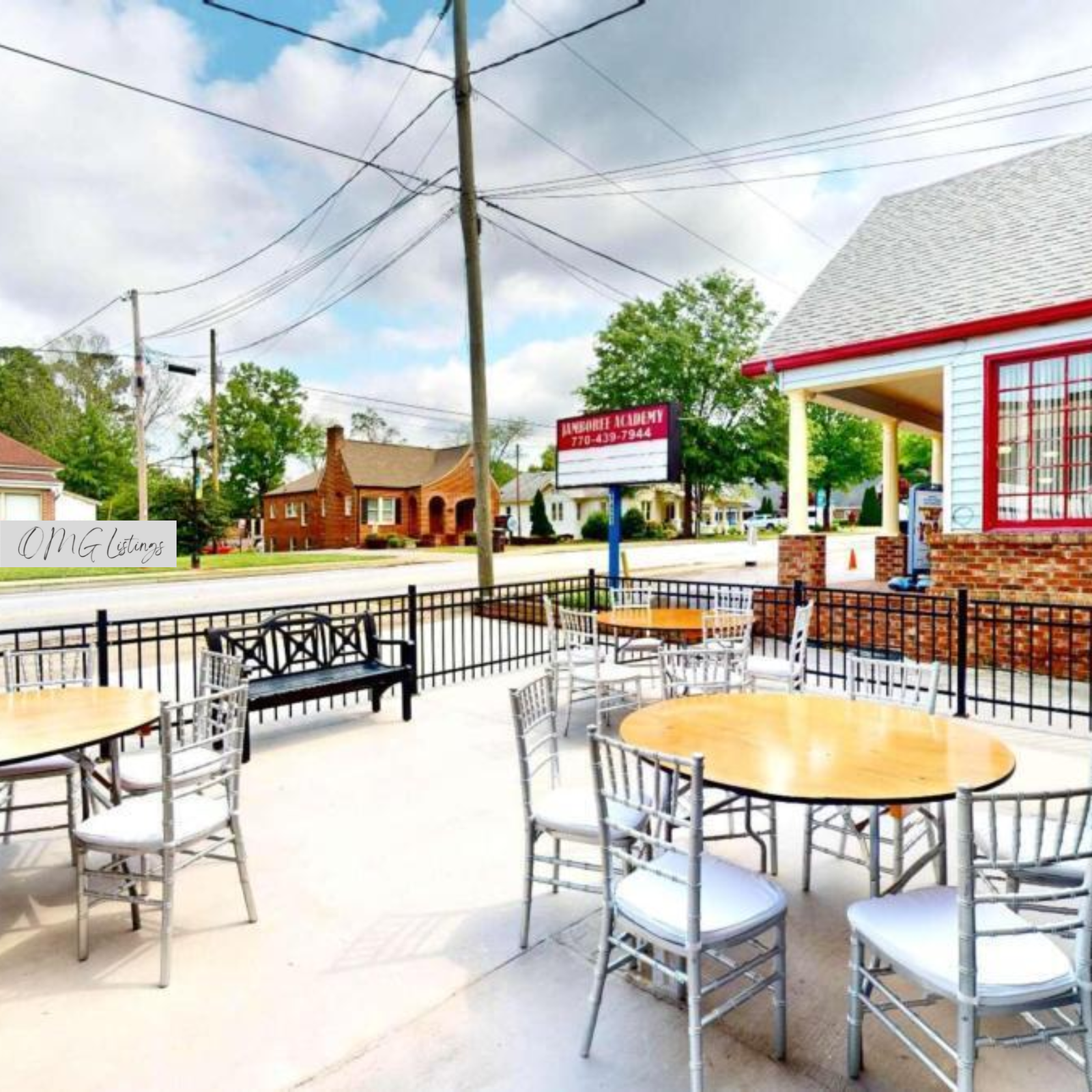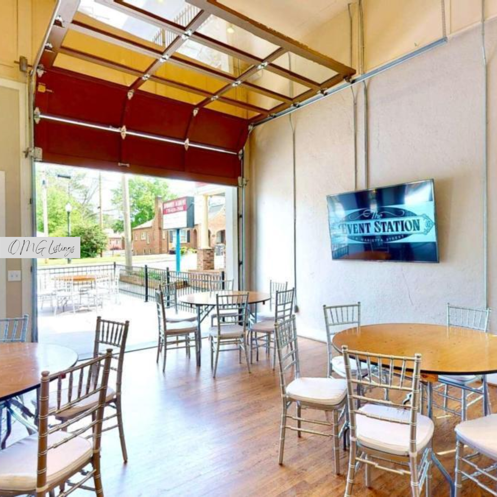 Established Event location in the heart of downtown Powder Springs. Two bathrooms, butler pantry, and additional plumbing stubbed for expansion. Lots of light provided through large front windows, and roll up bay doors that extend entertainment space to spacious fenced in patio, perfect for those events that require indoor/outdoor setup. Lots of parking nearby for convenient guest access.